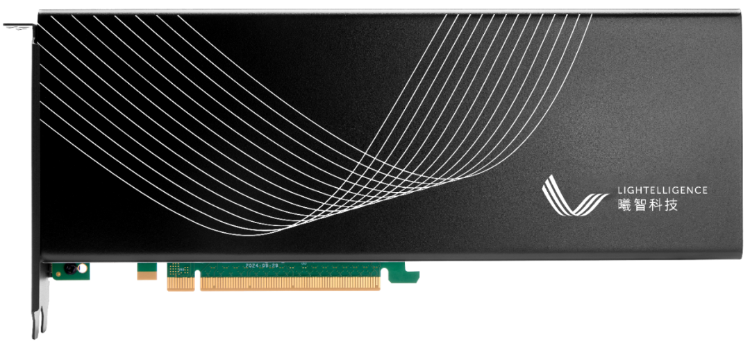 曦智科技2025年推出的全新支持商用算法的光电混合计算加速卡,包含目前全球最大规模128x128光子矩阵,具备复杂可编程性,用户可自由配置矩阵系数,通过PCIe高速接口可无缝集成现有计算系统,适用于多种商用场景。