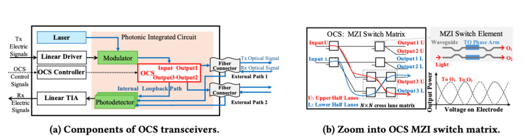 曦智科技在集成硅光领域拥有十余年的产业经验,在InfiniteHBD 方案中,创新性的开发了基于硅光子技术的分布式光交换dOCS(distributed Optical Circuit Switch),将基于马赫曾德(MZI,Mach-Zehnder Interferometer)交换矩阵的光交换芯片集成到商用QSFP-DD 800Gbps光电转换模组中,大幅简化了器件结构的同时,有效提升了器件集成度,从而降低了成本和功耗,显著提升了InfiniteHBD 的性价比和系统可扩展性。分布式光交换方案对于建设超大规模训练集群具有以下收益:- dOCS自带光电转换,提供交换能力的同时可形成跨机超节点;