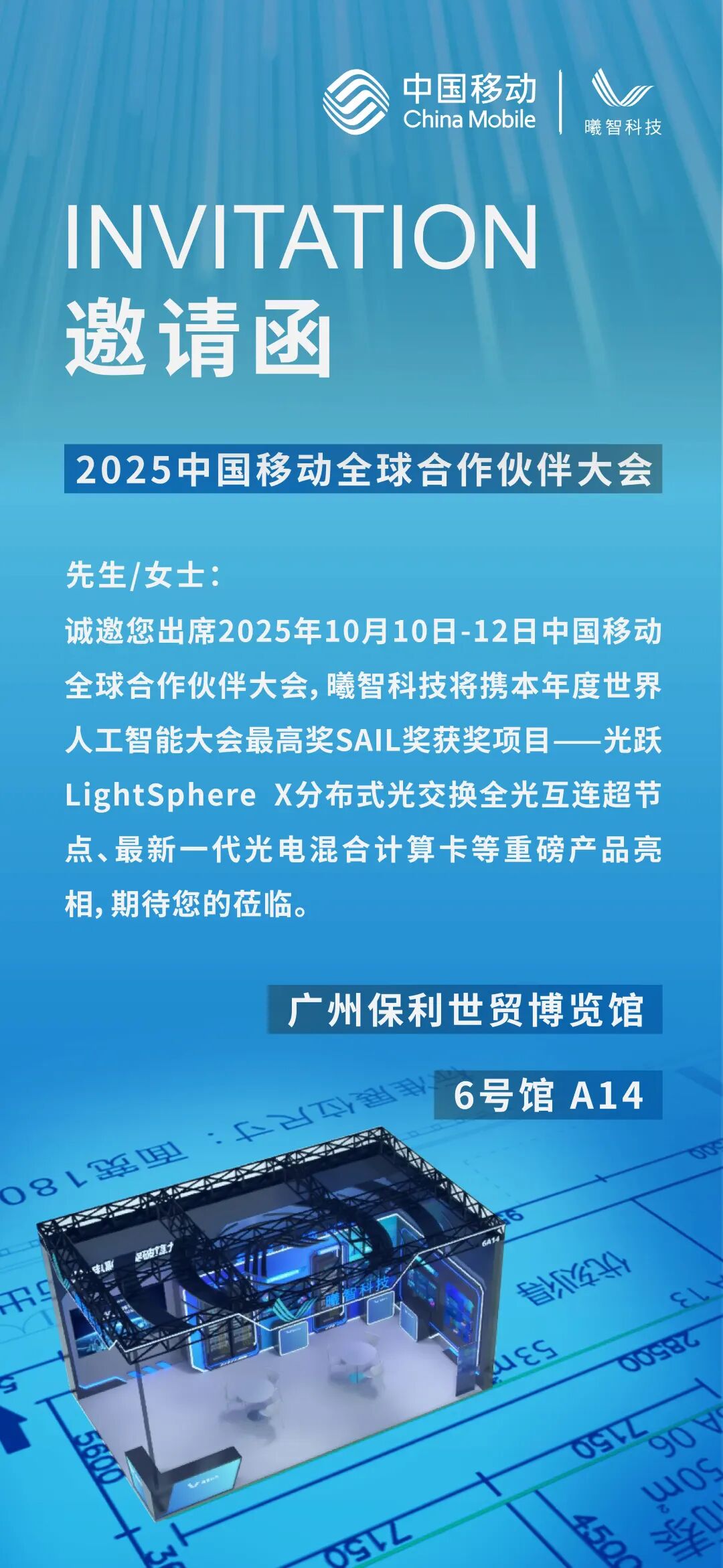 曦智科技荣幸受邀出席2025中国移动全球合作伙伴大会。我们已在广州保利世贸博览馆6号馆A14展位准备就绪,只为您的莅临。