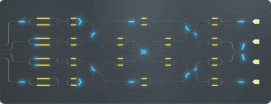 矩阵乘法是典型的线性运算,光通过可编程的光子矩阵计算(Optical Multiply Accumulate,oMAC)可实现高速并行处理: