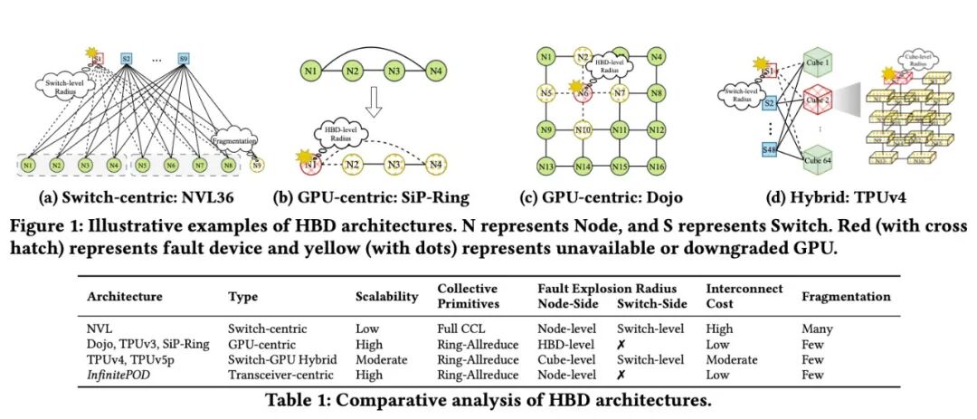 然而,现有的HBD架构在可扩展性、成本和容错能力等方面存在根本性限制:- 以交换机为中心的HBD(如NVIDIA NVL72)成本高昂、不易扩展规模。