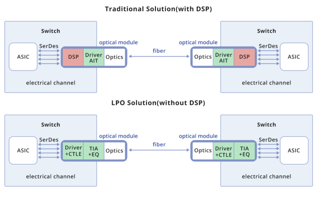 例如早在1995年就被广泛使用的可插拔光模块(根据设计的不同,可区分为DPO和LPO),就是数据中心的宠儿。但由于这种模块被安装在PCB边缘,ASIC则在封装基底上,这就让PIC/EIC与ASIC芯片之间拥有了较远的距离,而信号损耗随着距离的增长而变得更为明显。此外,这些模块的体积较大、互连密度低、功耗较大,随着使用的增多,会给系统带来很大的功耗负担。